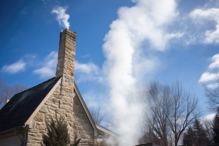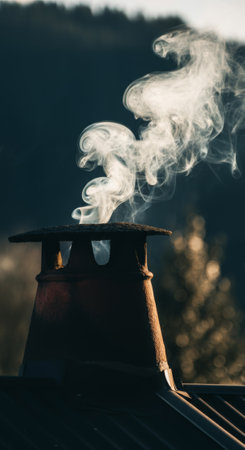 smoke billowing from an old, stone chimney, created with generative ai