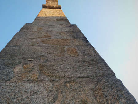 Emblematic pillar of the Way of St. James against a clear blue sky.