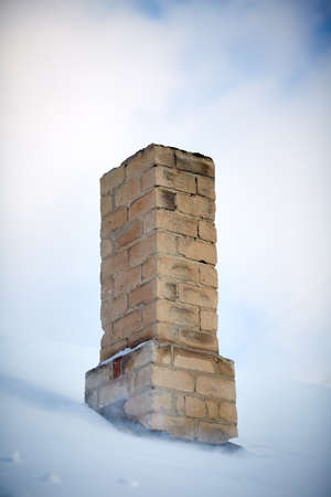 Chimney under snow after snowfall in winter season