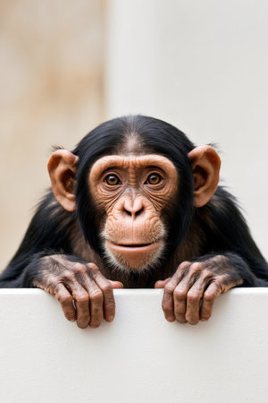 AI Generated. Curious Chimpanzee Peeking Over a White Surface