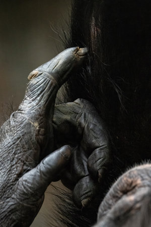 Guinea chimpanzee hands and fingers in detail.