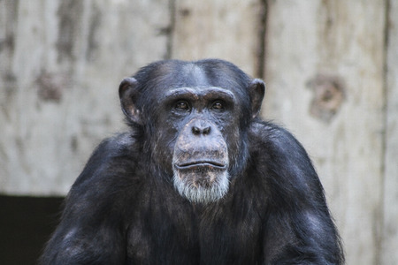 Old chimpanzee portrait at the zoo Barcelona, in Spain