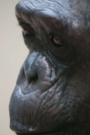 Closeup portrait of a thoughtful chimpanzee