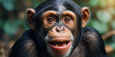 AI Generated. Chimpanzee expresses emotions Funny monkey with an open mouth Comedy Wildlife background Digital artwork
