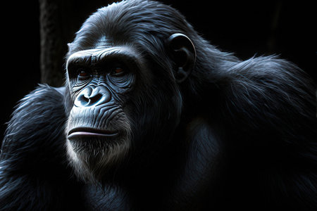 Low key portrait of a gorilla looking at the camera with black background