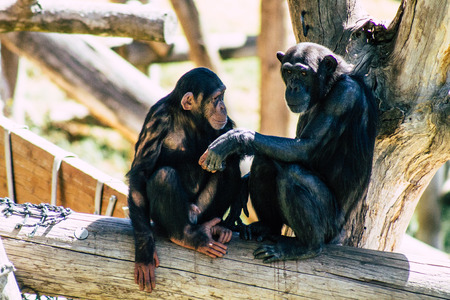 Close up of a Chimpanzee pan troglodytes couple