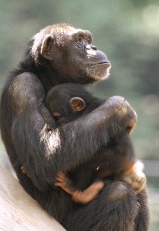 Chimpanzee (Pan troglodytes) with a baby.