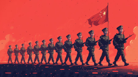 Cartoon vector soldiers marching in an Independence Day parade in Indonesia Generative AI