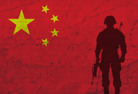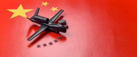 Silhouette of military aircraft with China flag