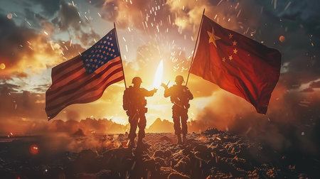 China-US trade war concept - Military Battle on China and American Flags