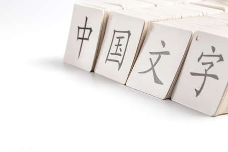 Chinese calligraphy on a wooden table, closeup of photo