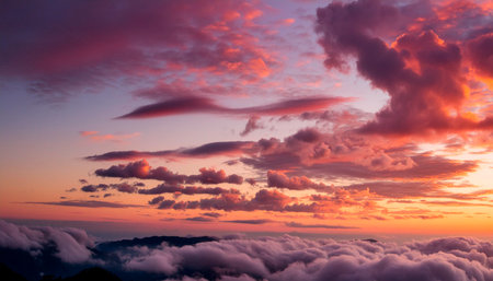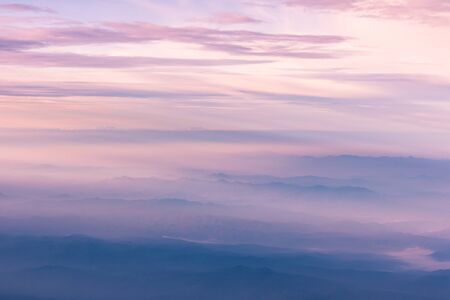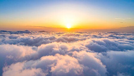 Aerial view of clouds and sky at sunrise. Beautiful nature background