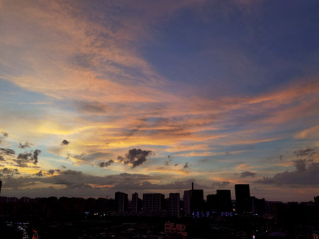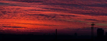 Dawn clouds over the metropolis of early sunset in Ekaterinburg