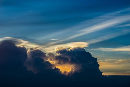 Beautiful dark orange sky evening beauty and Clouds at sunset , dawn, the rays of the sun break through the clouds. Natural background