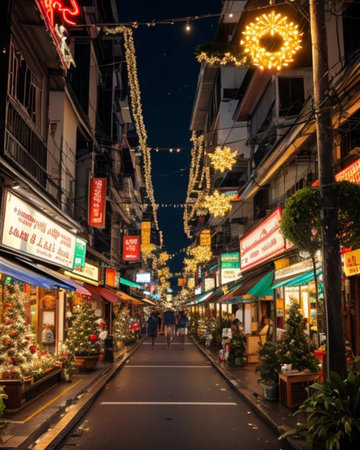Bangkok, Thailand - December 18th 2019: Bangkok street market at night, food, flowers, Thailand, SouthEast Asia