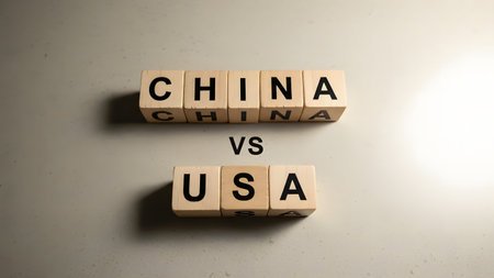 Conceptual image of the words CHINA VS USA on wooden cubes