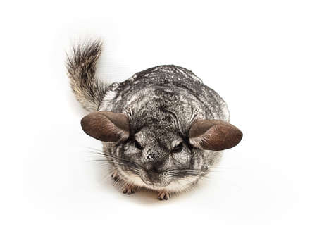 Gray ebonite chinchilla on white background. Isolataed