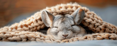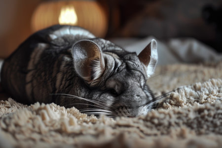 Cozy chinchilla resting on soft woolen blanket in warm ambiance