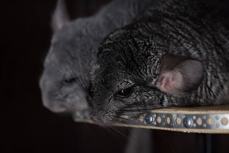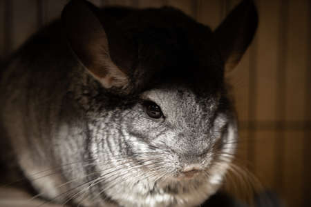 Gray chinchilla close-up. Selective focus. Shallow depth of field.