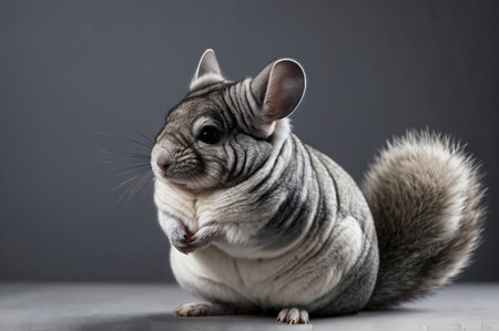 A soft and fluffy Chinchilla (Chinchilla lanigera) sitting upright.