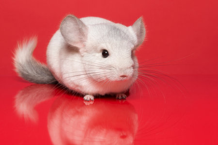 Cute chinchilla looking at the camera on a red background
