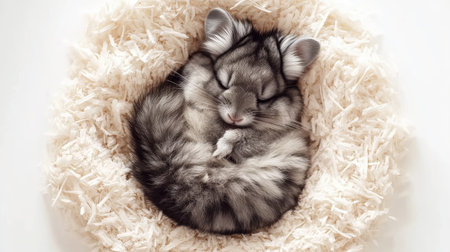 A cute hamster peacefully sleeping in a cozy nest of soft bedding. This adorable scene captures the essence of animal comfort and tranquility. Perfect for pet lovers.