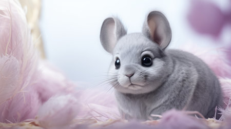 Fluffy Chinchilla on Cotton Snow with Pastel Background for E-commerce