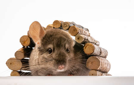 Gray chinchilla isolated on a white background. Copy space.
