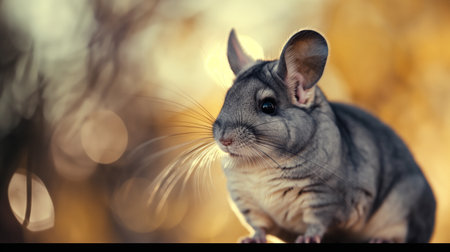 Gray chinchilla on a background of golden bokeh.