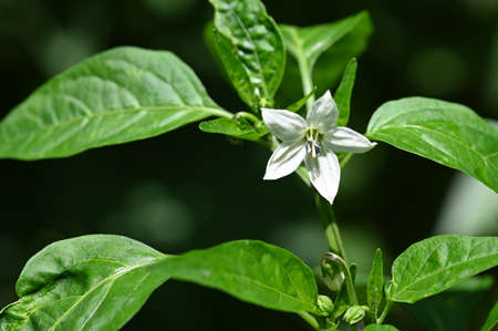 close-up of bell pepper plant outdoor in sunny vegetable garden shot at shallow depth of field