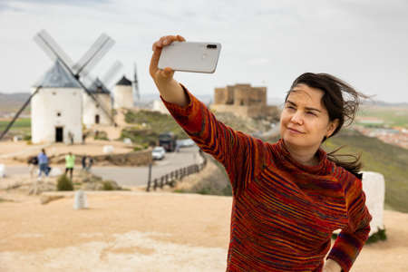 View Of The Villa On Top Of The Mountain Next To The Windmills In Consuegra.