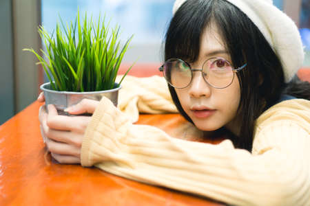 Lifestyle of a young Asian girl inside some beautiful bamboo in a park.