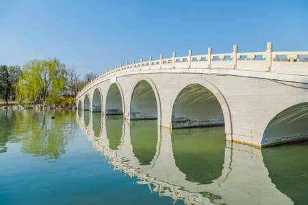 Beijing, China, April 12, 2017: Stone arch bridge in Summer Palace in China