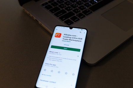 Dhaka, Bangladesh- 27 July 2025: 1688 app from Google Playstore is displayed on a smartphone screen.