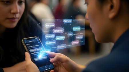 With showing people using smartphone with augmented reality chat bubbles. High resolution image...