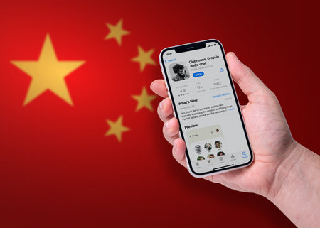 Kyiv, Ukraine - FEBRUARY 22, 2021: Top view Clubhouse app on the smartphone, Clubhouse drop in audio chat application view on the smartphone 2021