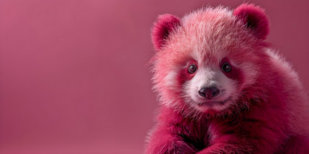 A pink Panda in a bright monochromatic pink environment. Concept Wildlife Photography, Animal Portraits, Monochrome Theme, Pink Aesthetic