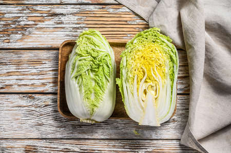Fresh organic chinese cabbage ready for cooking healthy vegetarian food, top view