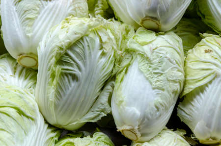 heads of Chinese cabbage collected from the fields. farmers vegetable harvest