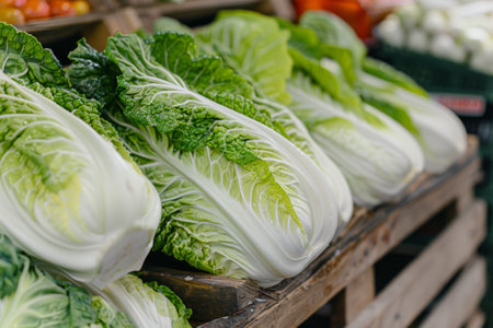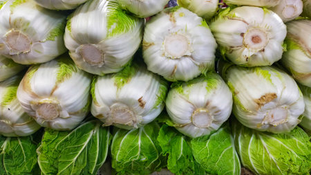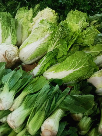 Fresh organic Napa cabbage and pak choy at traditional market