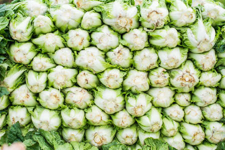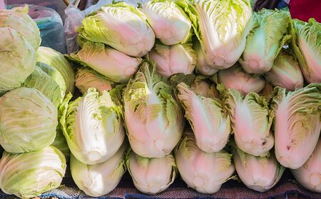 Green chinese cabbage vegetable stack each other at the traditional market.
