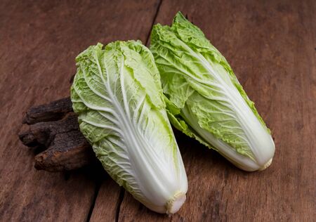 fresh chinese cabbage on old wooden table background. vintage