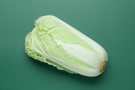 Fresh ripe Chinese cabbage on green background, top view