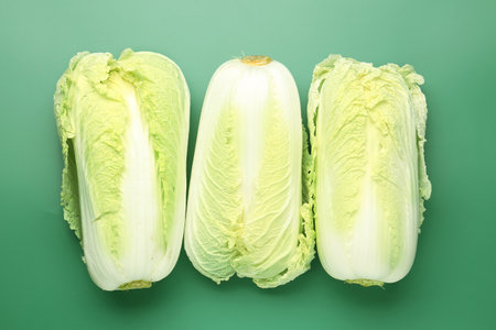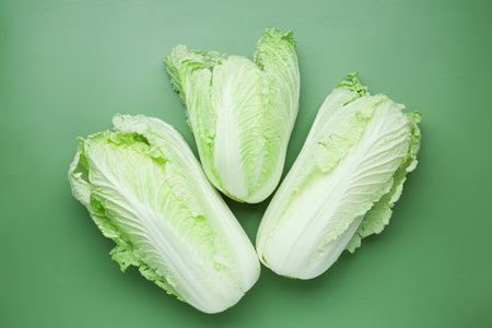Fresh Chinese cabbage on green background, top view