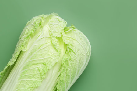 Fresh Chinese cabbage on green background, top view. Space for text
