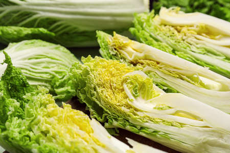 Fresh cut chinese cabbage on table, closeup