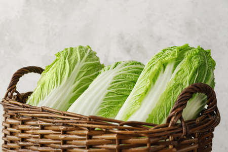 Fresh chinese cabbage in a basket. Selective focus