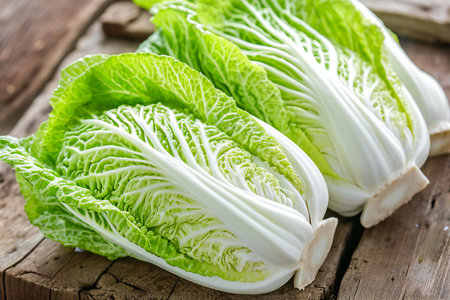 fresh chinese cabbage on wooden table, closeup, selective focus