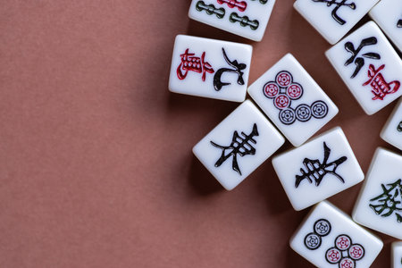 Mahjong tiles on a red background