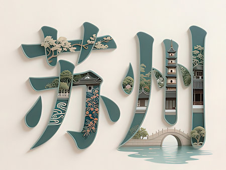 traditional Chinese calligraphy on white wall, 3D illustration.